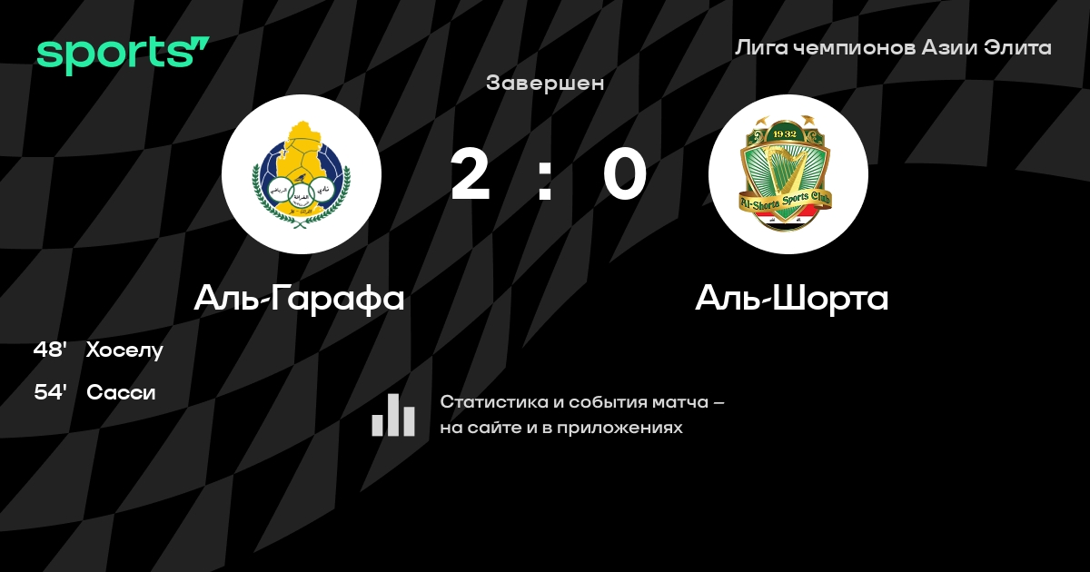 Результат прошлой игры в турнире «Лига чемпионов Азии Элита»: Аль-Шорта – Аль-Садд 1:1. Аль-Шорта не проигрывает в 3 последних матчах в рамках турнира «Лига чемпионов Азии Элита». В 3 последних матчах в турнире «Лига чемпионов Азии Элита» Аль-Шорта обязательно забивает. В последних 5 играх Аль-Шорта забивает 12 голов. В последних 5 играх Аль-Шорта пропускает 7 голов.