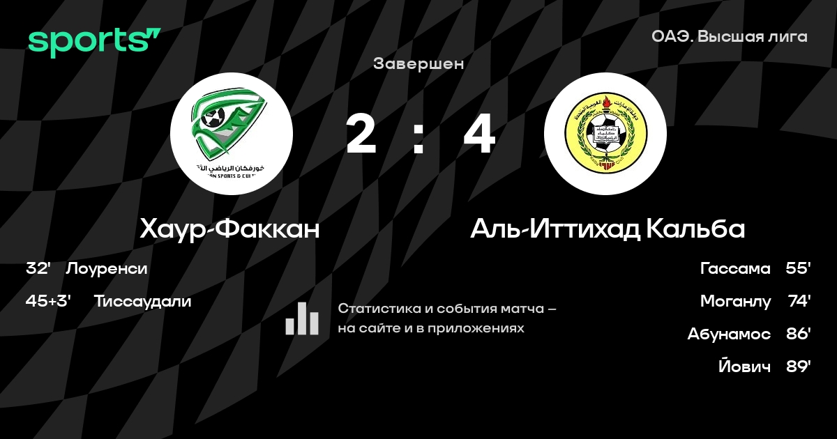 Аль-Иттихад Кальба не проигрывает в 7 последних матчах в гостях в турнире «Высшая лига»