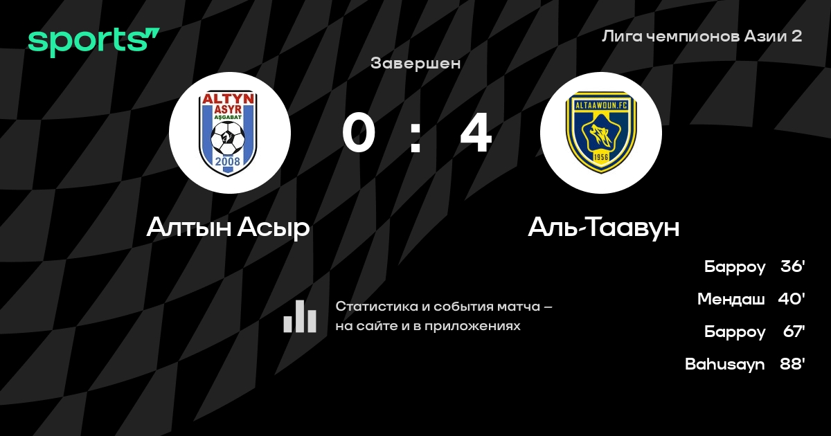 Результат прошлой игры в турнире «Лига чемпионов Азии 2»: Аль-Таавун – Алтын Асыр 2:1. После 3 туров Алтын Асыр набирает 0 очков и занимает 4 место в турнире. Лучший бомбардир команды – Мурад Аннаев: он забил 1 в 3 матчах. Алтын Асыр проигрывает в 3 последних матчах в рамках турнира «Лига чемпионов Азии 2». Алтын Асыр пропускает в 4 последних матчах в турнире «Лига чемпионов Азии 2». В последних 5 играх Алтын Асыр забивает 5 голов. В последних 5 играх Алтын Асыр пропускает 6 голов.