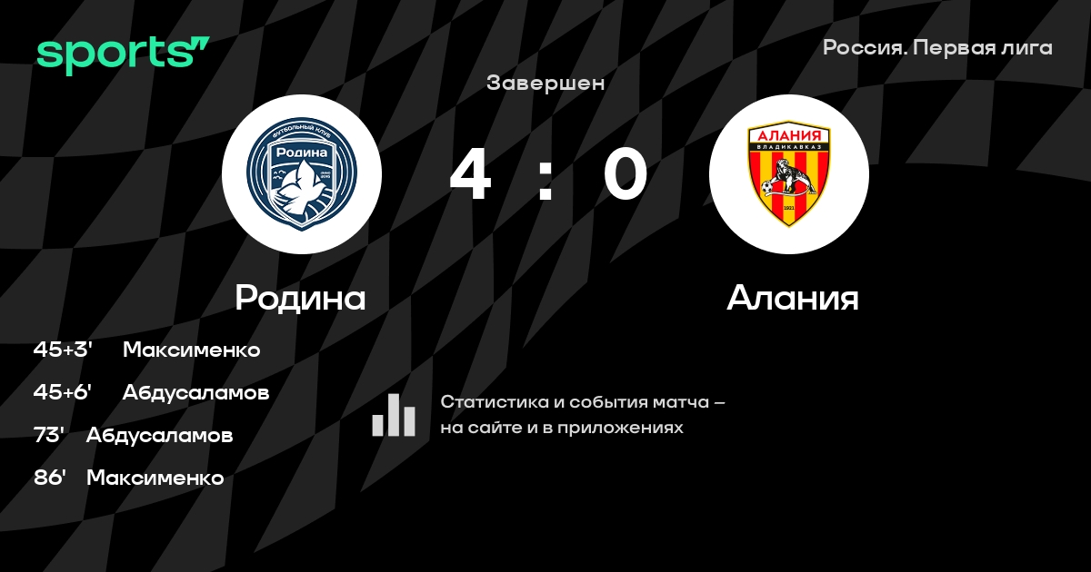 Родина – Алания: Родина забивает в 5 последних матчах против этого соперника