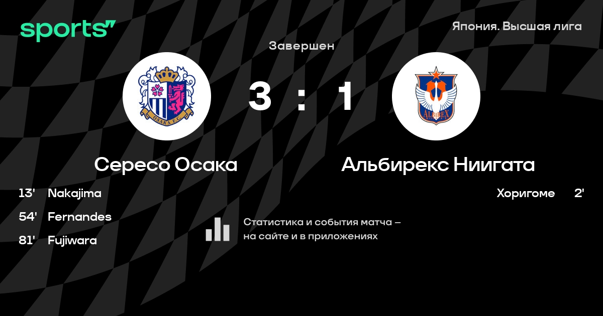 Сересо Осака – Альбирекс Ниигата: Сересо Осака забивает в 3 последних матчах против этого соперника