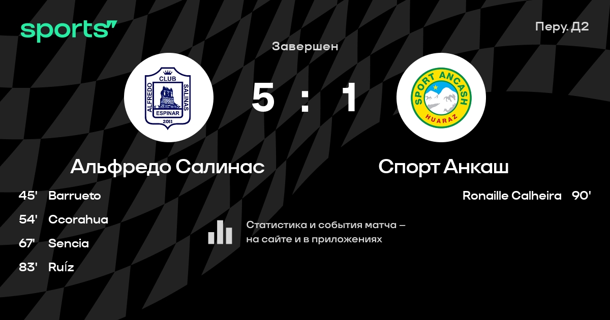 Альфредо Салинас - Спорт Анкаш: положение в турнире