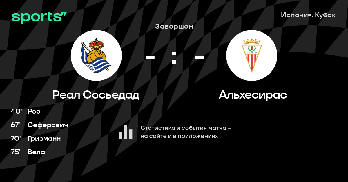 Субикараи - Хосе Анхель, Мартинес, Кадамуро, Сальдуа - Элустондо, Чори Кастро, Рос, Прието - Сеферович, ВелаЗапасные: Ройо, Пардо, Гризманн