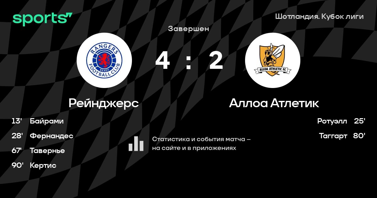 Рейнджерс – Аллоа Атлетик: Рейнджерс не проигрывает в 6 последних матчах против этого соперника