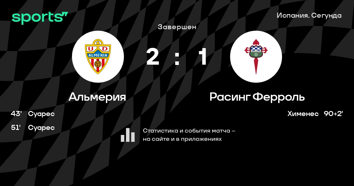 Альмерия – Расинг Ферроль: Расинг Ферроль забивает в 4 последних матчах против этого соперника