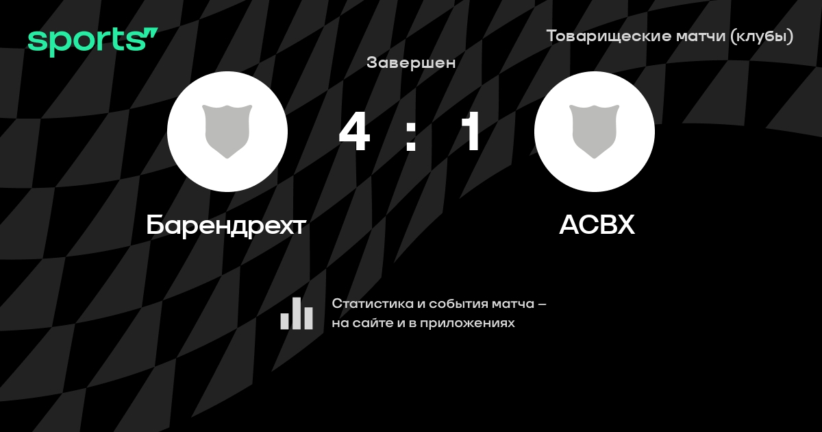 Результат прошлой игры в турнире «Товарищеские матчи (клубы)»: Барендрехт – ТЕК 3:1. В 5 последних матчах в турнире «Товарищеские матчи (клубы)» Барендрехт обязательно забивает. Барендрехт пропускает в 5 последних матчах в турнире «Товарищеские матчи (клубы)». В последних 5 играх Барендрехт забивает 15 голов. В последних 5 играх Барендрехт пропускает 4 голов.