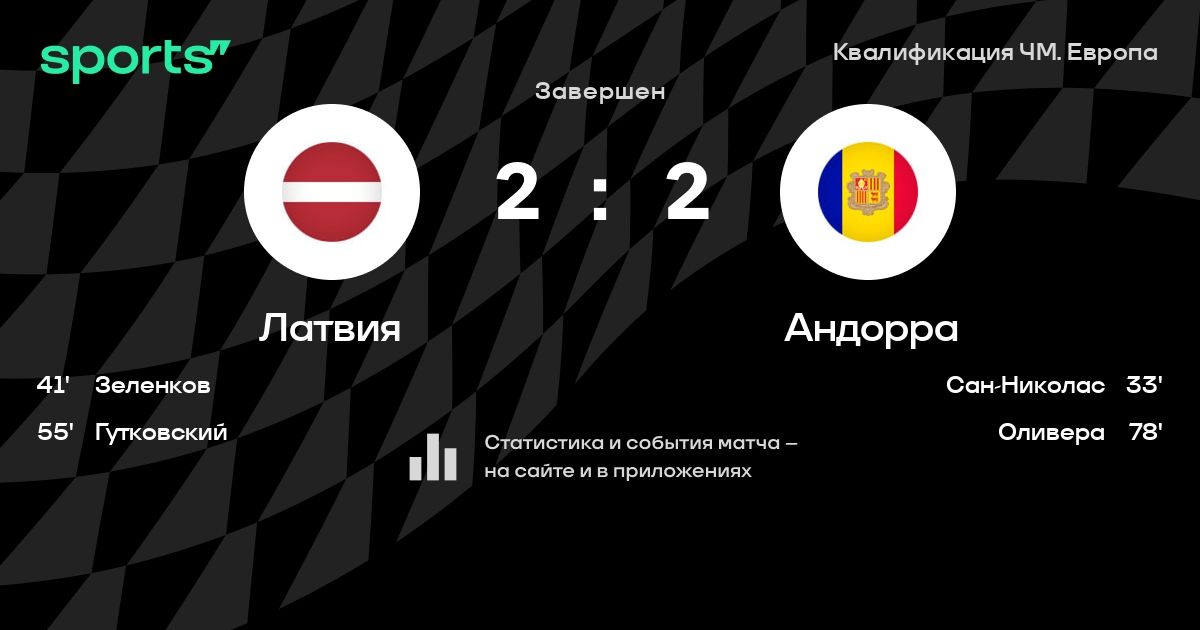 Латвия – Андорра: Латвия не пропускает в 1 из 12 последних матчей против этого соперника