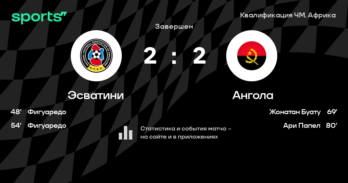 Результат прошлой игры в турнире «Квалификация ЧМ. Африка»: Ливия – Эсватини 2:0. После 8 туров Эсватини набирает 2 очков и занимает 6 место в турнире. Лучший бомбардир команды – P. Mkhonto: он забил 3 в 11 матчах. Эсватини не может выиграть в 8 последних матчах в рамках турнира «Квалификация ЧМ. Африка». Эсватини пропускает в 3 последних матчах в турнире «Квалификация ЧМ. Африка». В последних 5 играх Эсватини забивает 4 голов. В последних 5 играх Эсватини пропускает 8 голов.