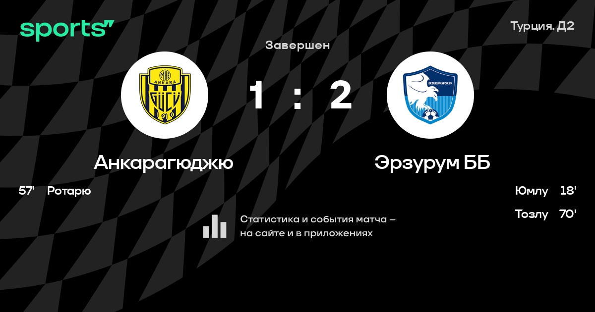 Результат прошлой игры в турнире «Первая лига»: Шанлыурфаспор – Анкарагюджю 0:1. После 20 туров Анкарагюджю набирает 30 очков и занимает 9 место в турнире. Лучший бомбардир команды – Реналдо Сифас: он забил 9 в 18 матчах. В последних 5 играх Анкарагюджю забивает 5 голов. В последних 5 играх Анкарагюджю пропускает 3 голов.