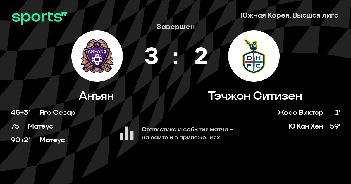 Анъян – Тэчжон Ситизен: Тэчжон Ситизен забивает в 12 последних матчах против этого соперника