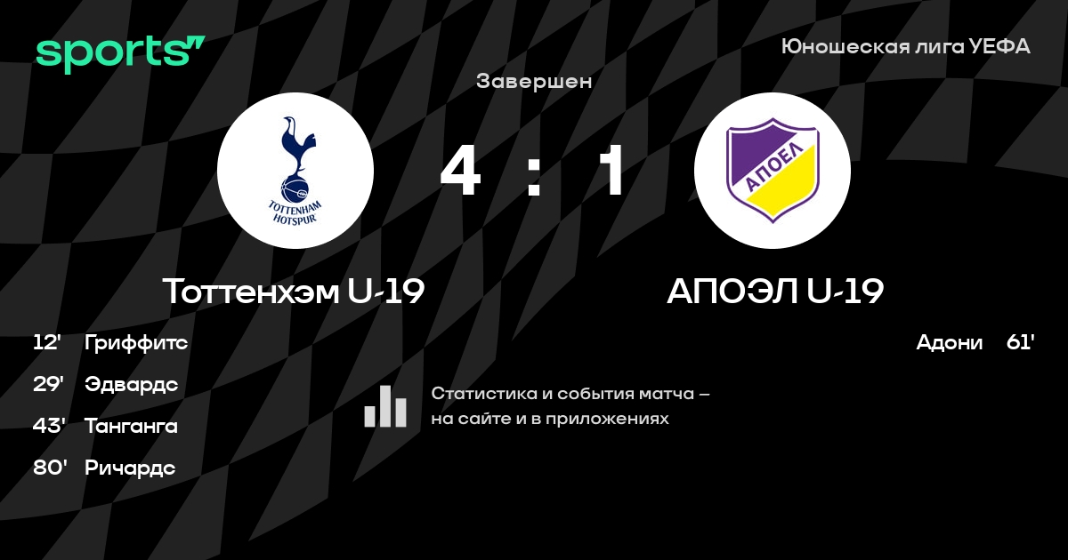 Трансляция Тоттенхэм U-19 - АПОЭЛ U-19