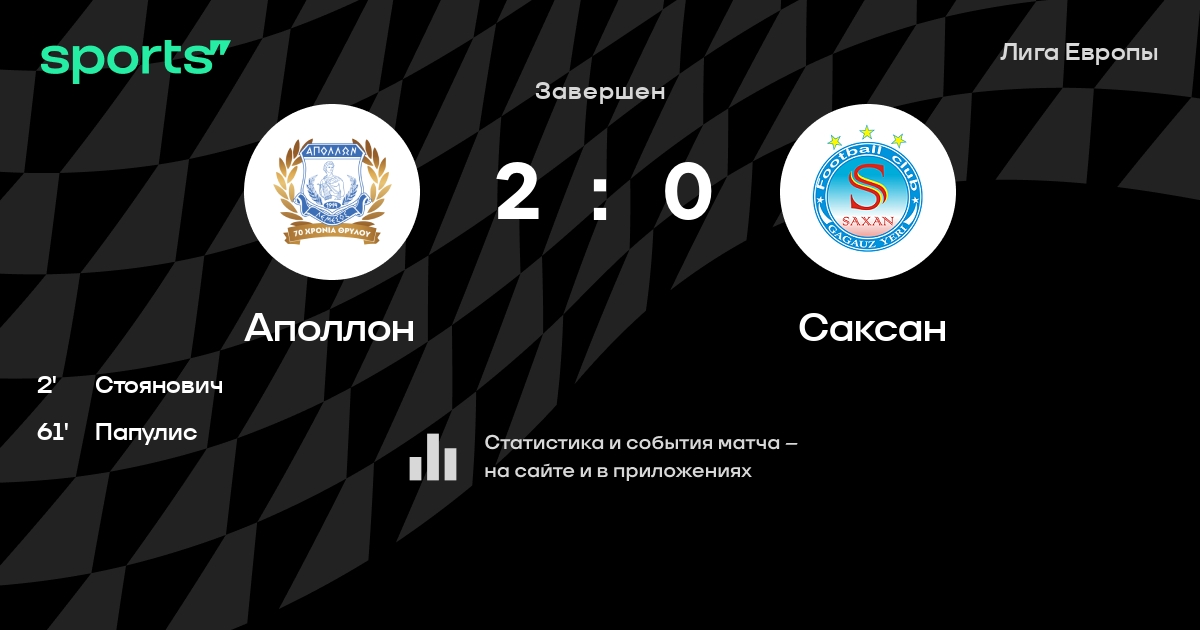 Аполлон - Саксан: статистика матча