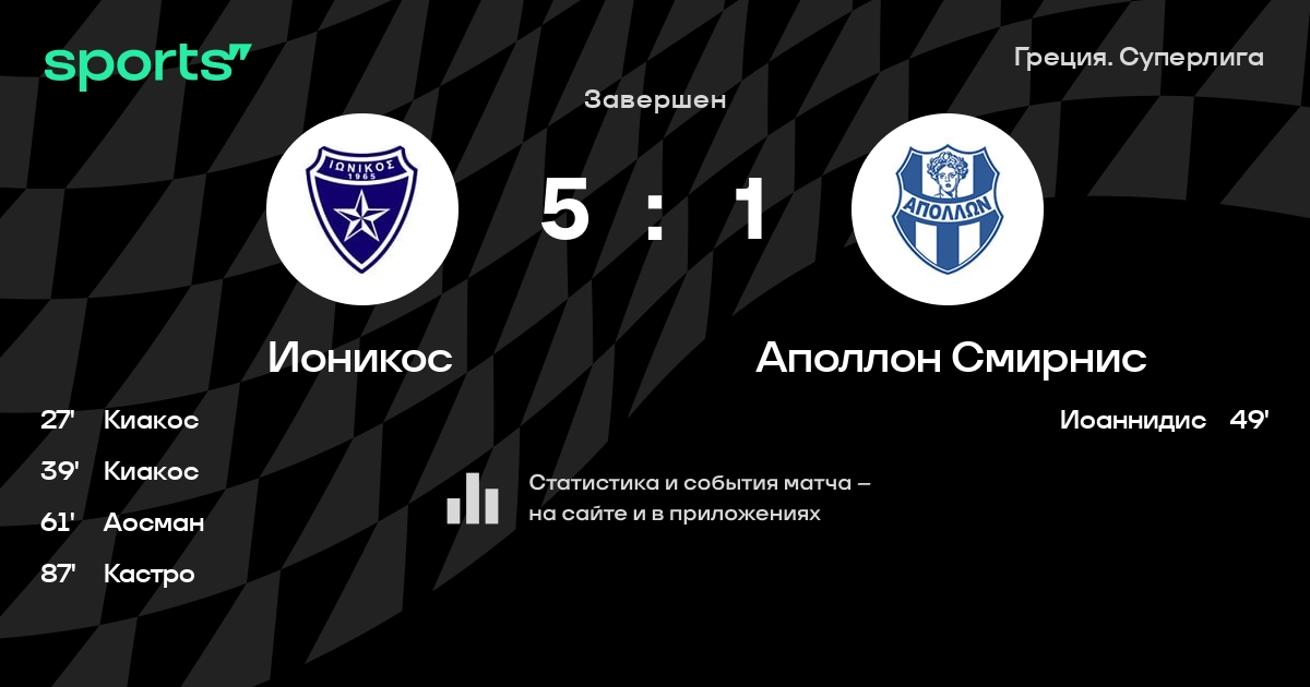 Ионикос – Аполлон Смирнис: Ионикос не проигрывает в 5 последних матчах против этого соперника