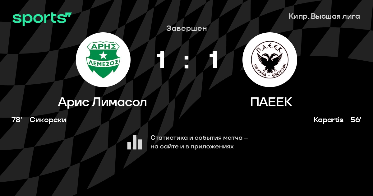 Арис Лимасол – ПАЕЕК: ПАЕЕК не пропускает в 3 последних матчах против этого соперника