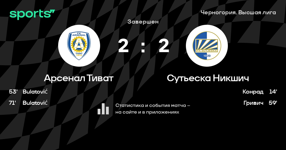 Арсенал Тиват – Сутьеска Никшич: коэффициенты