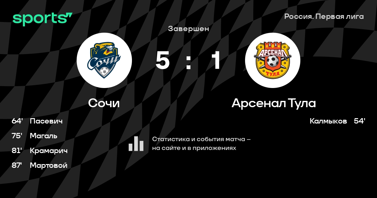 Сочи – Арсенал Тула: Сочи забивает в 8 последних матчах против этого соперника