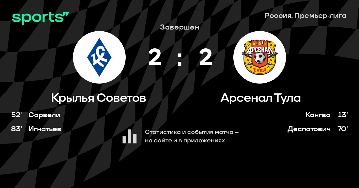Крылья Советов – Арсенал Тула: Арсенал Тула забивает в 7 последних матчах против этого соперника
