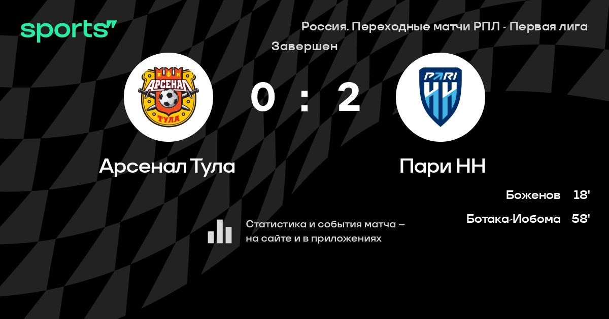 Арсенал Тула – Пари НН: Пари НН забивает в 3 последних матчах против этого соперника