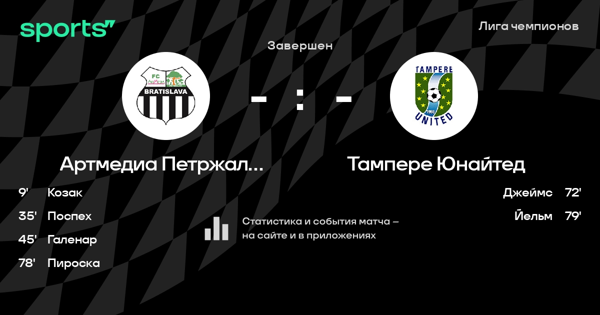 Артмедиа Петржалка – Тампере Юнайтед: коэффициенты