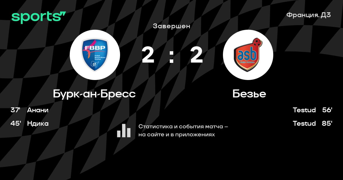 | 5 | Бурк-ан-Бресс | 25 | 11 | 9 | 5 | 38 | 30 | +8 | 42 | ||