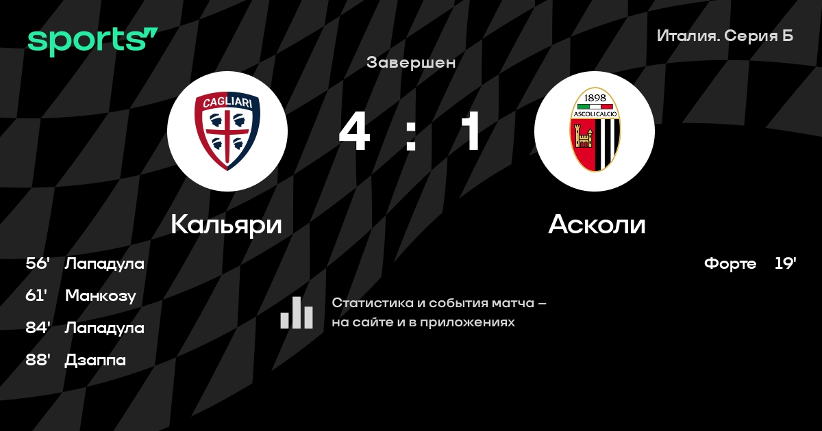 Кальяри – Асколи: Кальяри побеждает в 5 последних очных матчах дома