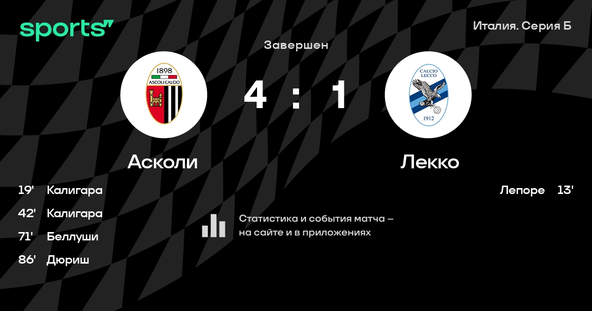 В последних 5 играх Лекко забивает в среднем 0.20 гола за игру