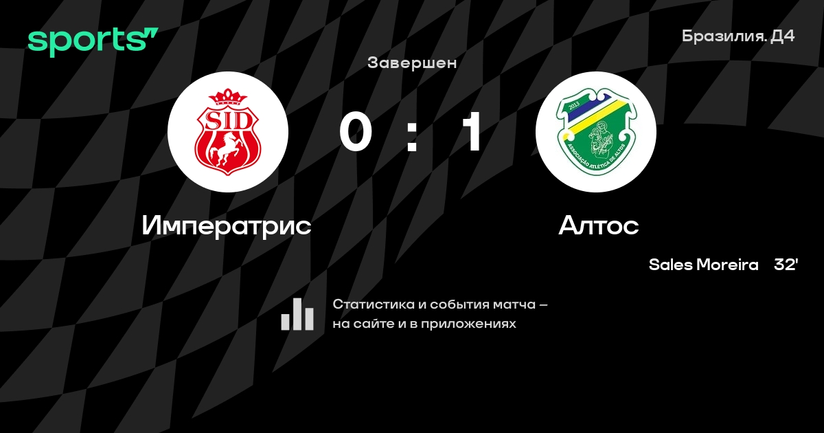 Результат прошлой игры в турнире «Серия D»: Алтос – Сампайо Корреа 1:1. После 8 туров Алтос набирает 14 очков и занимает 2 место в турнире. Лучший бомбардир команды – Leandro: он забил 4 в 16 матчах. Алтос играет вничью в 3 последних матчах в рамках турнира «Серия D». В 9 последних матчах в турнире «Серия D» Алтос обязательно забивает. Алтос пропускает в 4 последних матчах в турнире «Серия D». В последних 5 играх Алтос забивает 8 голов. В последних 5 играх Алтос пропускает 6 голов.