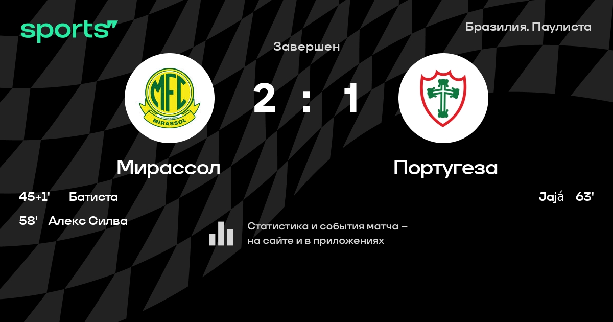 Результат прошлой игры в турнире «Лига Паулиста»: Сан-Бернарду – Мирассол 1:2. После 3 туров Мирассол набирает 6 очков и занимает 2 место в турнире. Лучший бомбардир команды – Юри Кастильо: он забил 7 в 21 матчах. Мирассол имеет лучшую разницу мячей в турнире – 6. В 3 последних матчах в турнире «Лига Паулиста» Мирассол обязательно забивает. Мирассол больше всех забивает в турнире – 9 в 3. В последних 5 играх Мирассол забивает 11 голов. В последних 5 играх Мирассол пропускает 4 голов.
