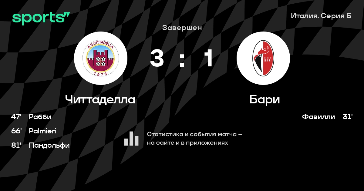 Читтаделла – Бари: Бари не проигрывает в 8 последних матчах против этого соперника