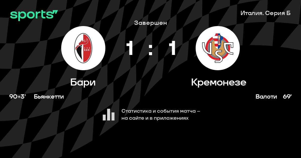 Бари – Кремонезе: Бари не проигрывает в 5 из 6 последних матчей против этого соперника дома