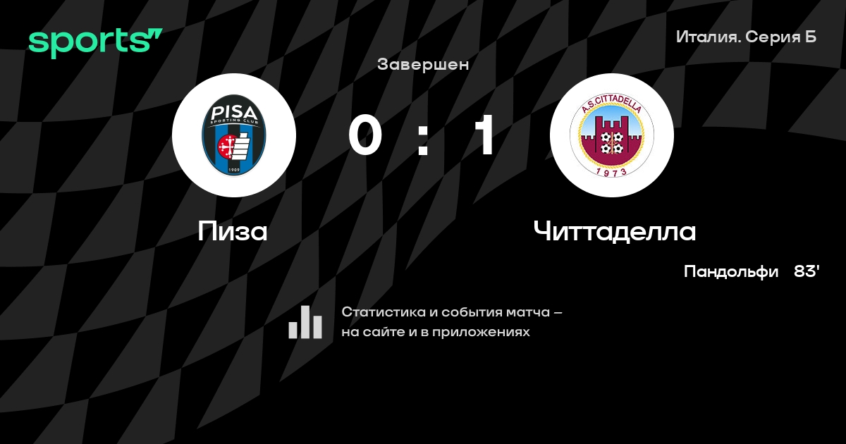 Результат прошлой игры в турнире «Серия B»: Читтаделла – Специя 0:2. После 24 туров Читтаделла набирает 27 очков и занимает 15 место в турнире. Лучший бомбардир команды – Лука Пандольфи: он забил 5 в 21 матчах. В последних 5 играх Читтаделла забивает 4 голов. В последних 5 играх Читтаделла пропускает 5 голов.