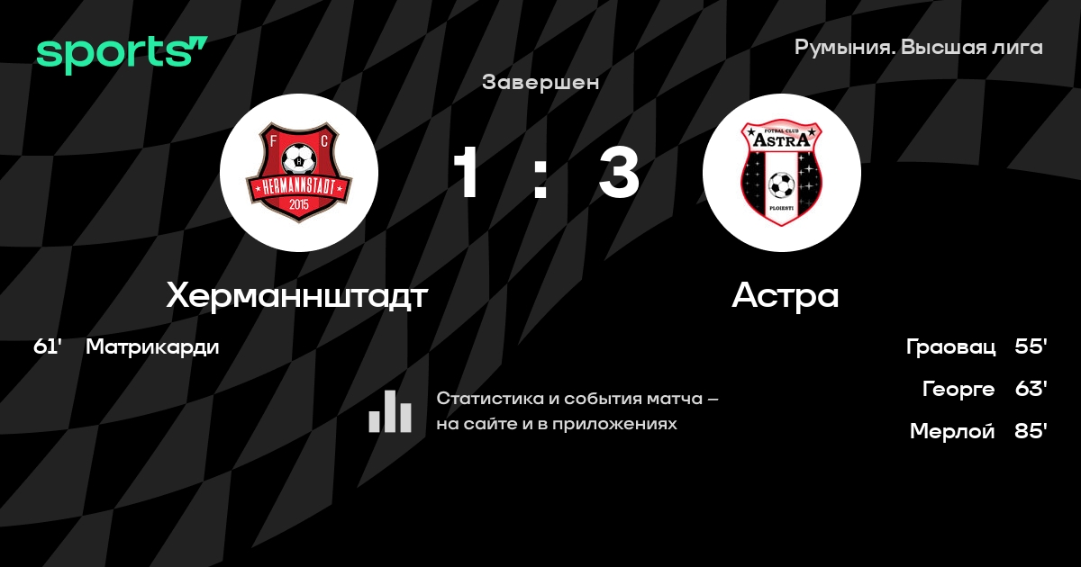 Херманнштадт – Астра: Астра не проигрывает в 6 последних матчах против этого соперника.