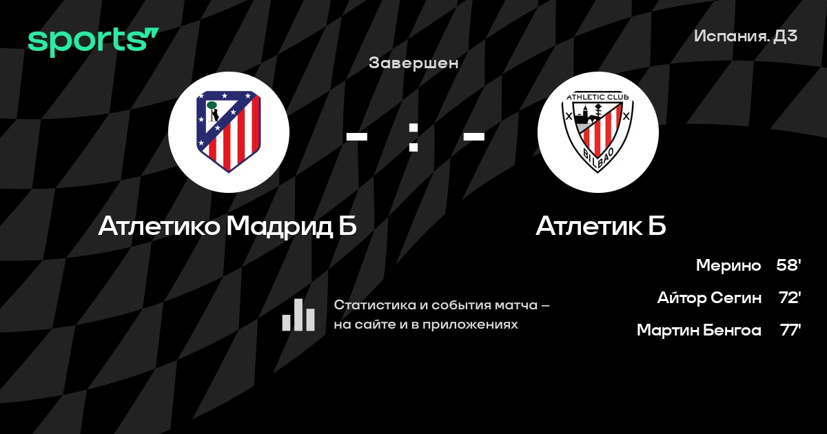 Трансляция Атлетико Мадрид Б - Атлетик Б