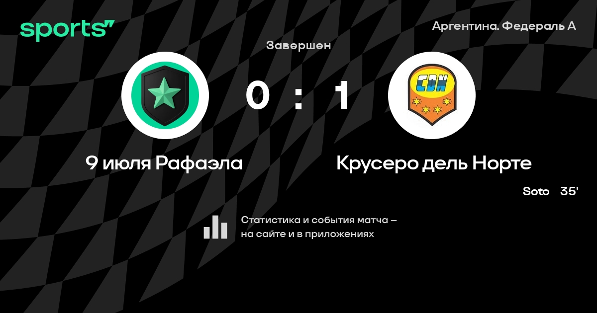 9 июля Рафаэла – Крусеро дель Норте: 9 июля Рафаэла забивает в 5 последних матчах против этого соперника