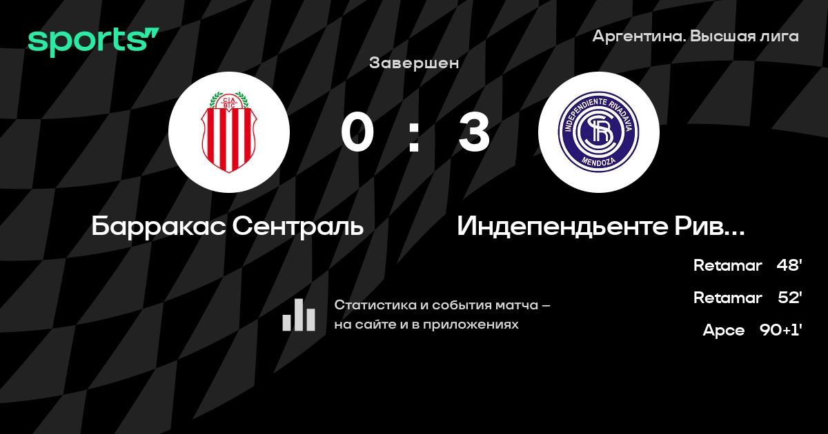 Результат прошлой игры в турнире «Примера»: Индепендьенте Ривадавия – Ньюэллс Олд Бойз 1:2. После 16 туров Индепендьенте Ривадавия набирает 27 очков и занимает 6 место в турнире. Индепендьенте Ривадавия пропускает в 4 последних матчах в турнире «Примера». В последних 5 играх Индепендьенте Ривадавия забивает 8 голов. В последних 5 играх Индепендьенте Ривадавия пропускает 8 голов.