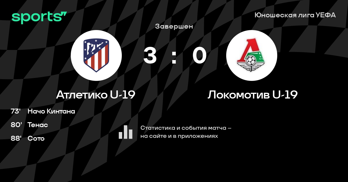 Юношеская лига УЕФА. «Локомотив» крупно проиграл «Атлетико» (0:3) и остался 4-м в группе