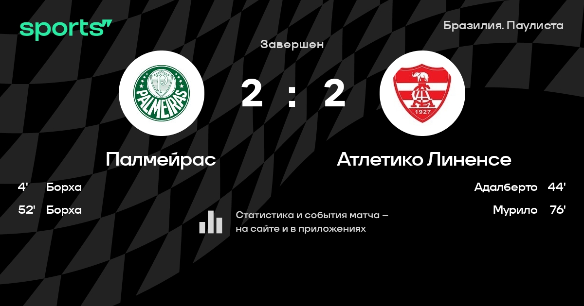 Жаилсон - Бастос, Тиаго Мартинс, Антонио Карлос, Маркос Роша - Мело, Лукас Лима, Че-Че - Герра, Дуду, БорхаЗапасные: Уэвертон, Прасс, Луан Кандидо, Виктор Луис, Жуниньо, Луан, Майке, Бруно Энрике, Скарпа, Тиаго Сантос, Виллиан, Кено