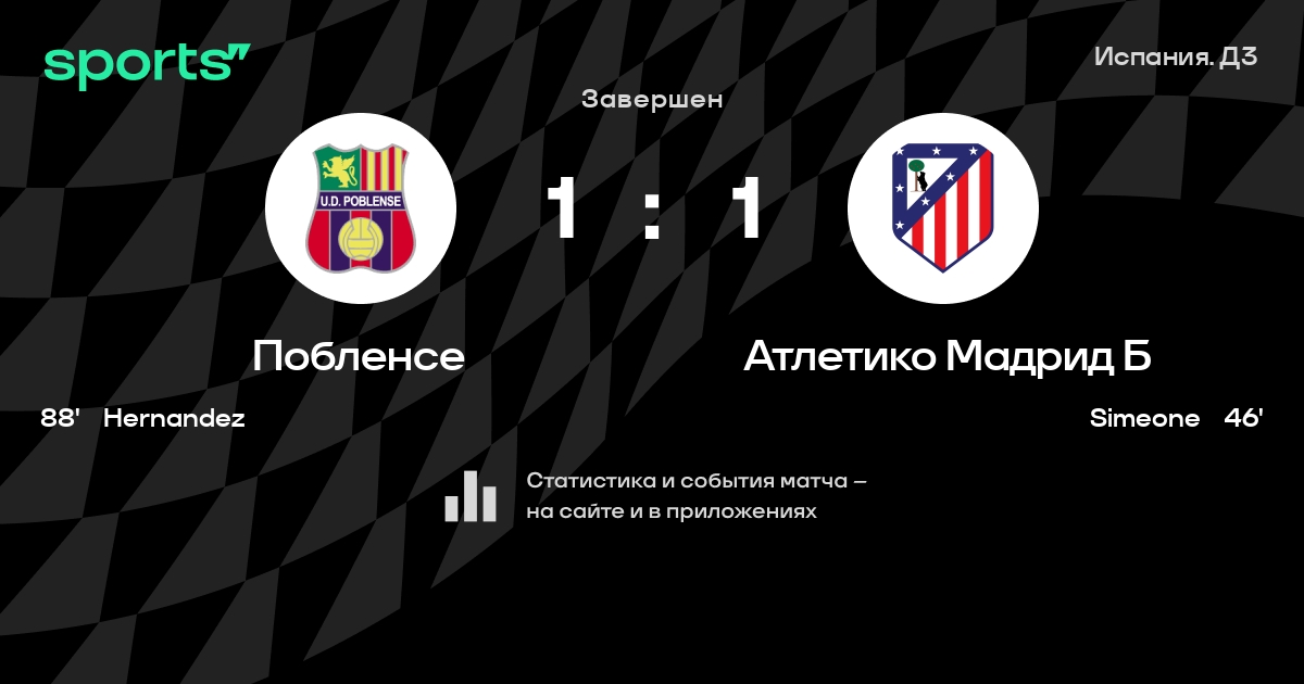 Побленсе - Атлетико Мадрид Б: статистика матча