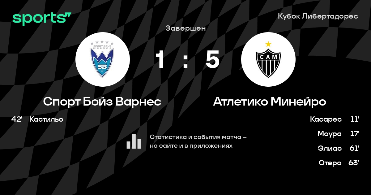 Трансляция Спорт Бойз Варнес - Атлетико Минейро