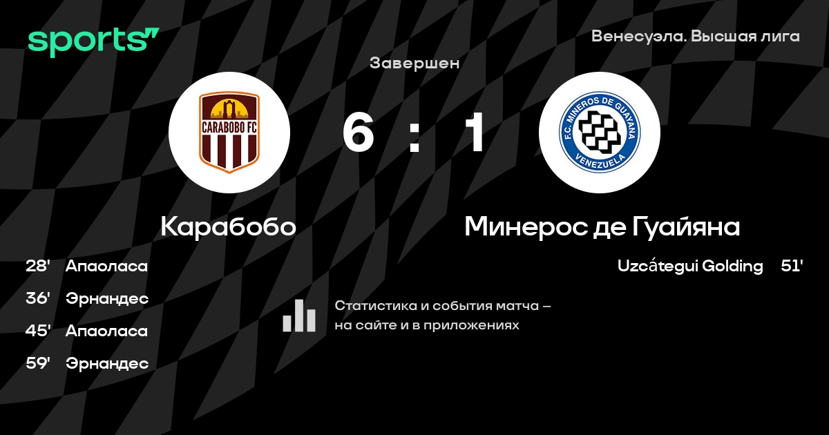 Карабобо – Минерос де Гуайяна: коэффициенты