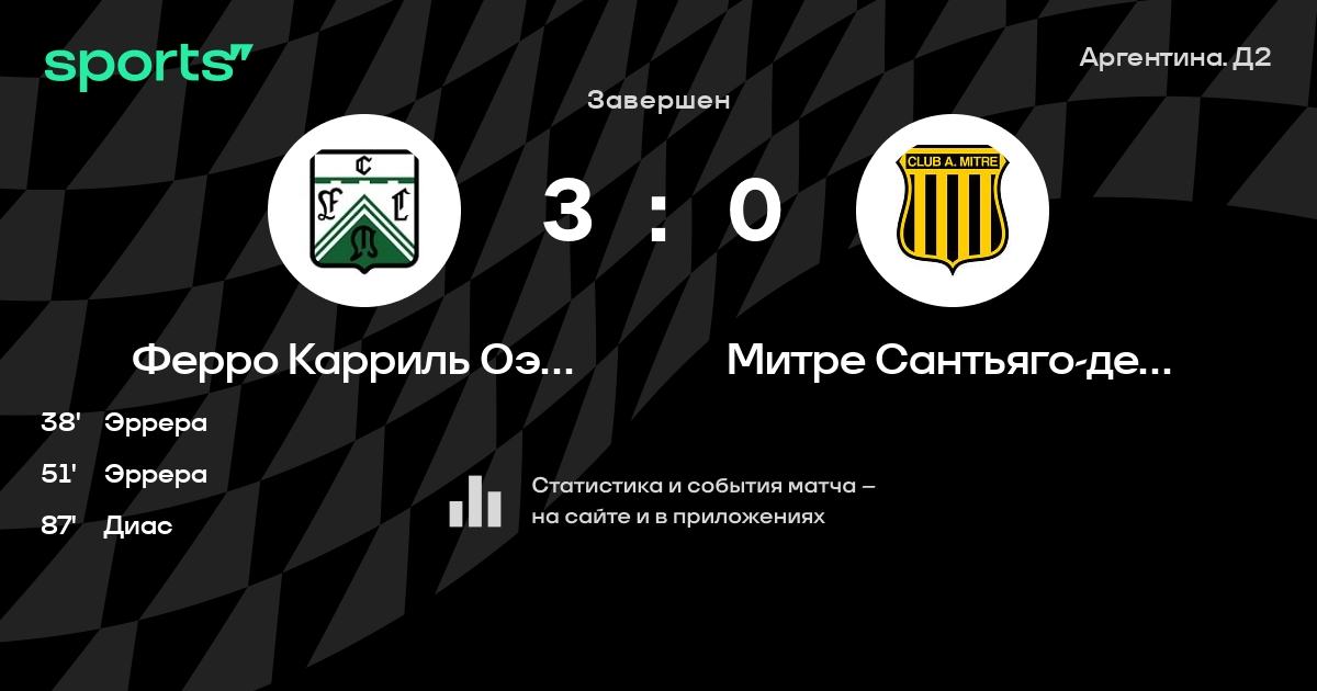 Ферро Карриль Оэсте – Митре Сантьяго-дель-Эстеро: Ферро Карриль Оэсте не пропускает в 1 из 6 последних матчей против этого соперника