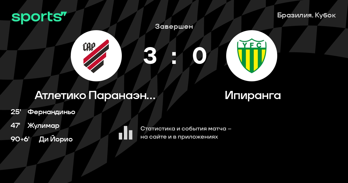 Ипиранга не проигрывает в 3 последних матчах в рамках турнира «Кубок Бразилии». В 3 последних матчах в турнире «Кубок Бразилии» Ипиранга обязательно забивает. В последних 5 играх Ипиранга забивает 3 голов. В последних 5 играх Ипиранга пропускает 4 голов.