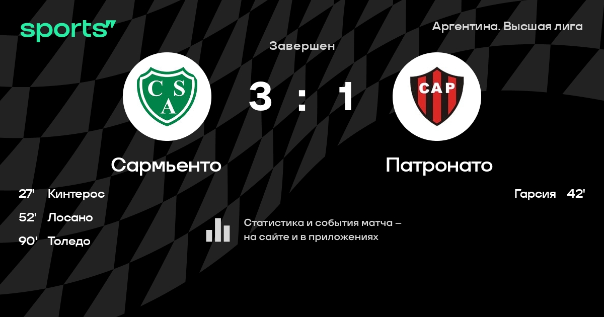 Результат прошлой игры в турнире «Высшая лига»: Эстудиантес – Сармьенто 2:1. После 14 туров Сармьенто набирает 21 очков и занимает 7 место в турнире. Лучший бомбардир команды – Хонатан Торрес: он забил 5 в 14 матчах. В последних 5 играх Сармьенто забивает 2 голов. В последних 5 играх Сармьенто пропускает 7 голов.