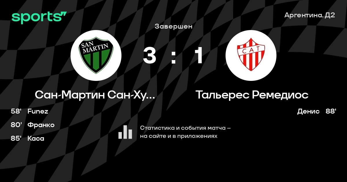 Трансляция Сан-Мартин Сан-Хуан - Тальерес Ремедиос
