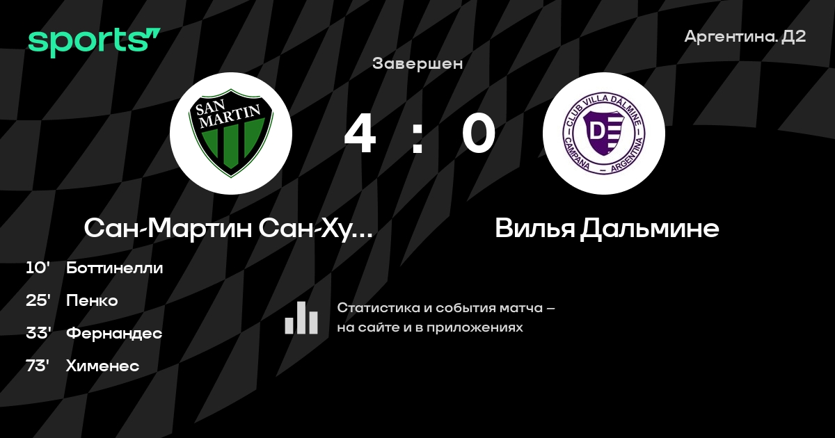 Сан-Мартин Сан-Хуан – Вилья Дальмине: Сан-Мартин Сан-Хуан забивает в 3 последних матчах против этого соперника