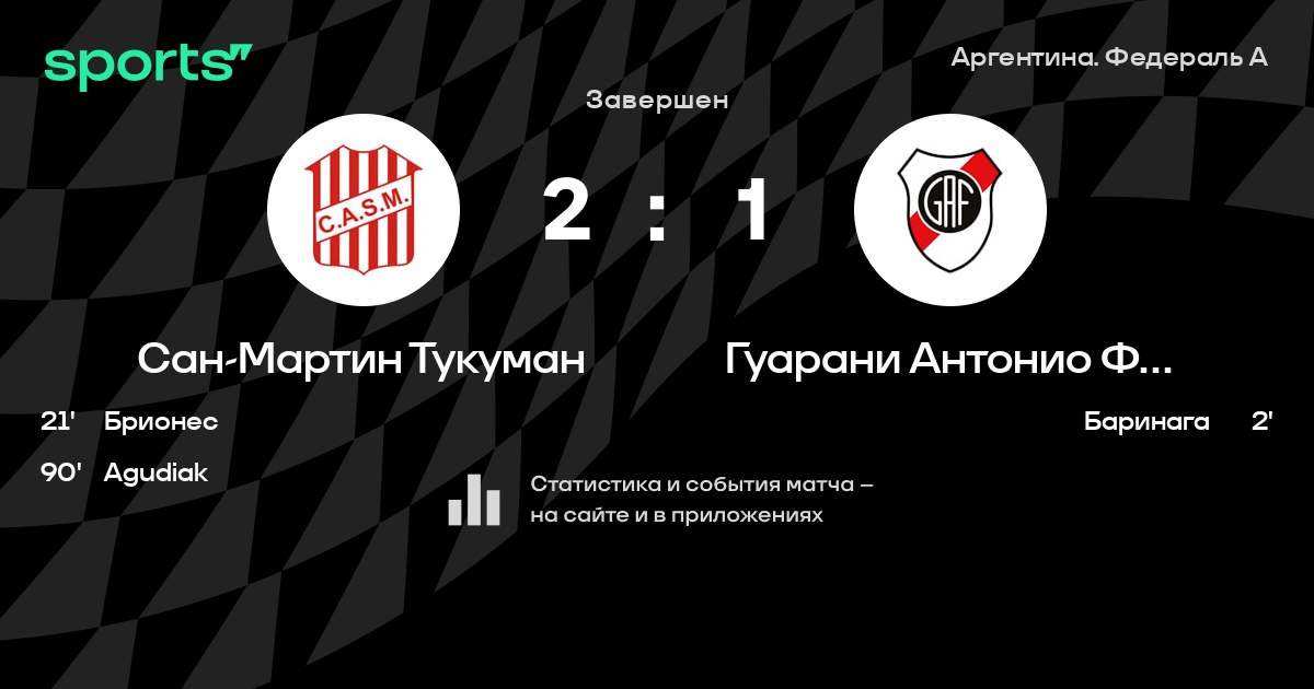 Сан-Мартин Тукуман - Гуарани Антонио Франко: составы на матч