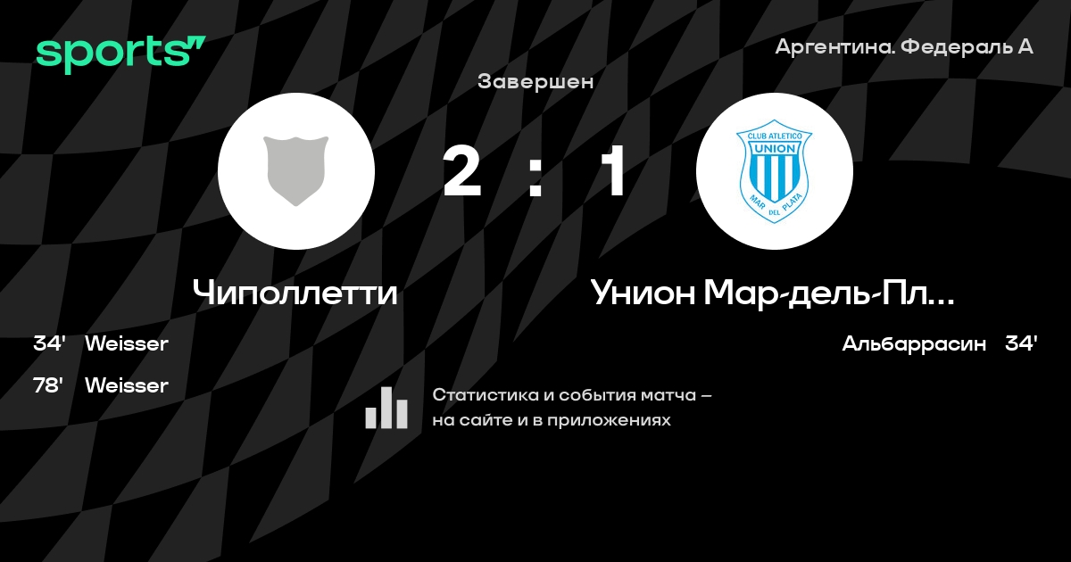 Чиполлетти – Унион Мар-дель-Плата: коэффициенты