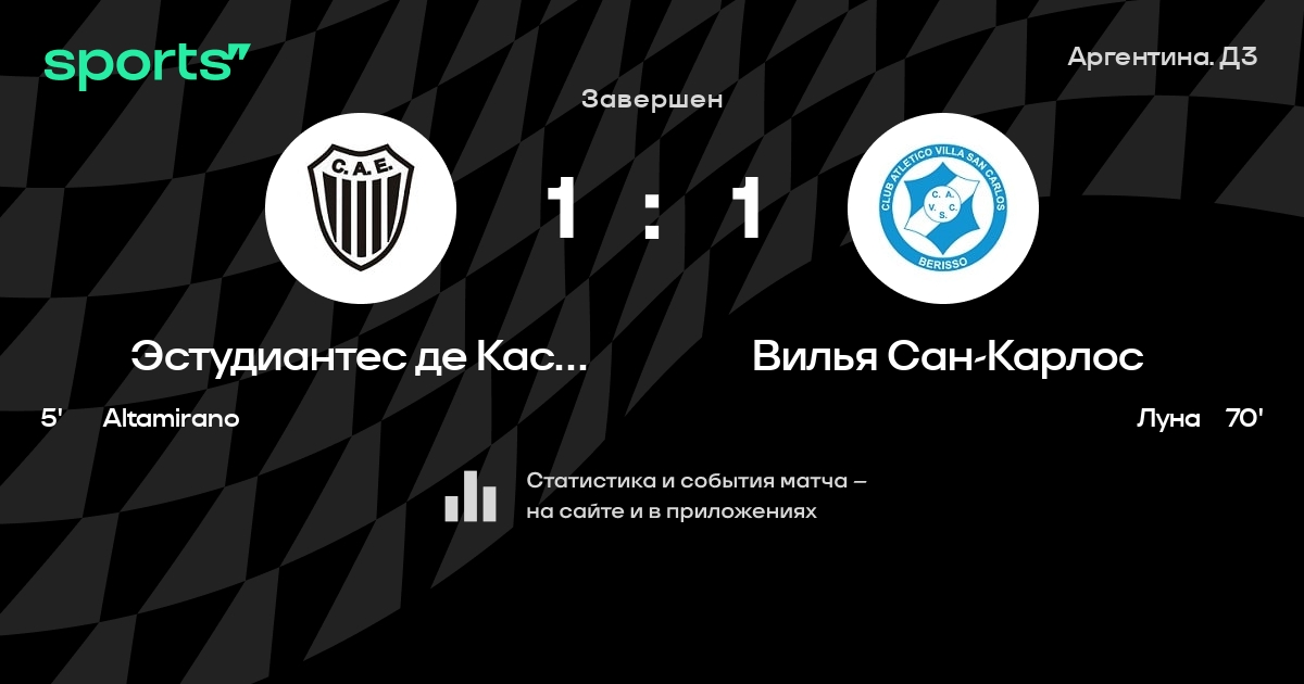 Эстудиантес де Касерос - Вилья Сан-Карлос: положение в турнире