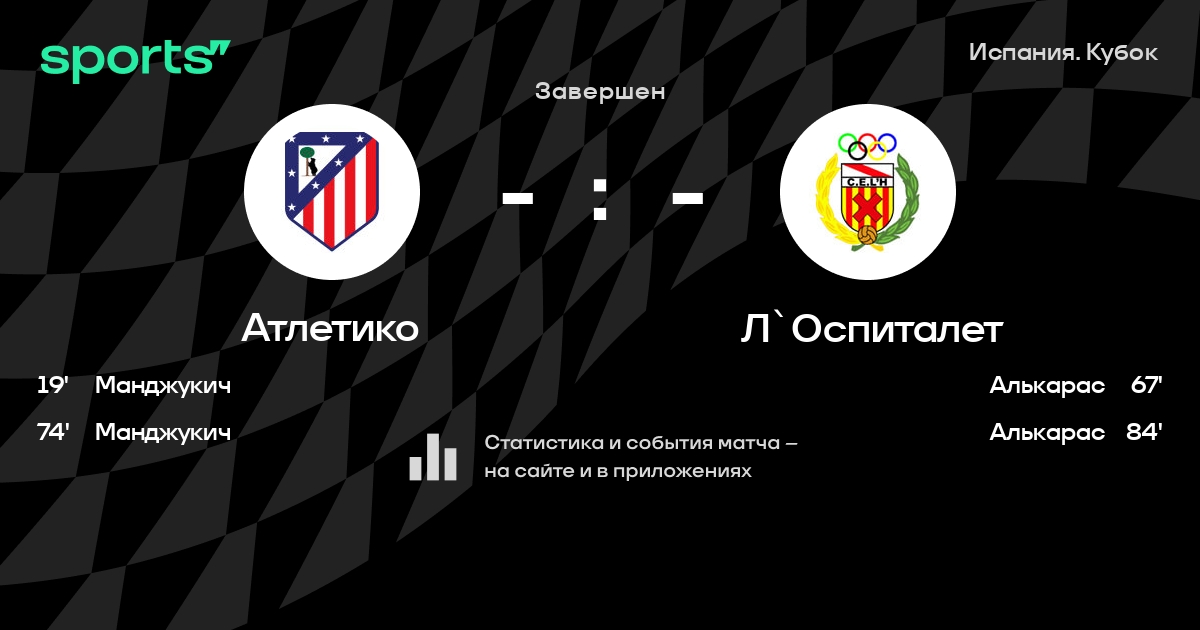 Облак - Pérez Vicente, Хименес, Гамес, Люка Эрнандес, Суарес - Коке, Родригес, Сауль - Хименес, МанджукичЗапасные: Мойя, Начо Монсальве, Рауль Гарсия, Ramos Blanco, Кейта