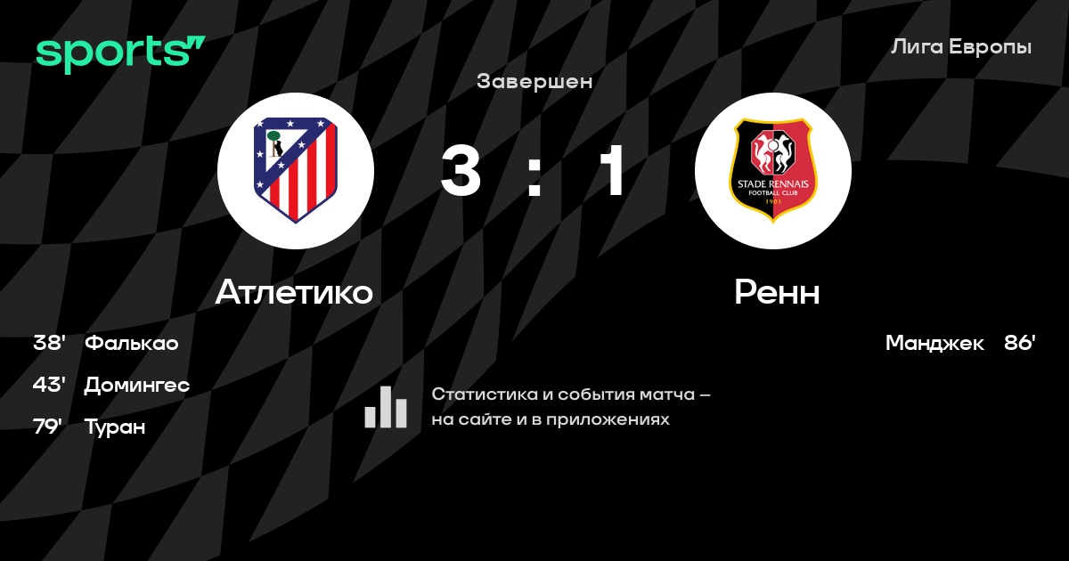 Асенхо - Домингес, Переа, Годин, Филипе Луис - Туран, Коке, Ассунсао, Диего - Адриан, ФалькаоЗапасные: Куртуа, Хуанфран, Суарес, Миранда, Рейес, Сальвио